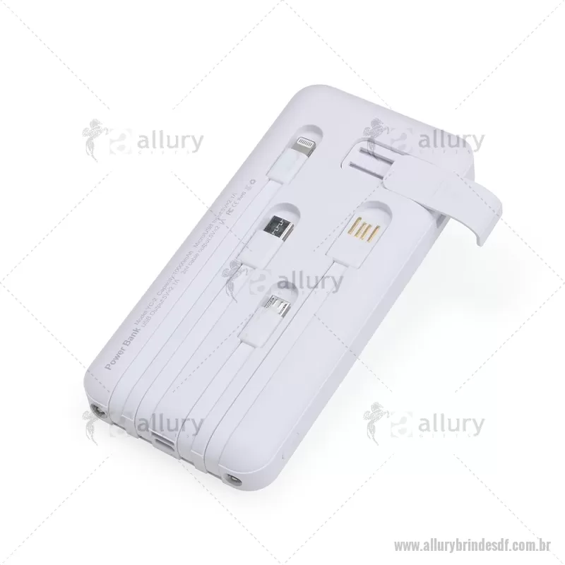 Carregador Power Bank 10.000mAh com Lanterna e Multissaídas Nosso power bank 10.000mAh 4 em 1 é uma solução prática e eficiente para manter os dispositivos sempre carregados, mesmo quando estiver em movimento. Feito em plástico, este carregador portátil é compatível com diversos dispositivos, pois conta com quatro cabos acoplados: Lightning, tipo-C, micro-USB e USB. Além disso, o power bank possui um suporte lateral integrado, feito para manter o celular na horizontal durante o carregamento, permitindo assistir vídeos ou participar de reuniões enquanto o dispositivo carrega. Funcional, nosso carregador é equipado com duas lanternas para situações de emergência. Sua entrada micro-USB 5V=2.1A e saída USB 5V=2.1A, oferece um desempenho eficiente e rápido para o dia a dia. Largura : 6,9 cm x Espessura : 2,2 cm x Comprimento : 14,2 cm Peso aproximado (g): 225 - - ALLDFTEC528