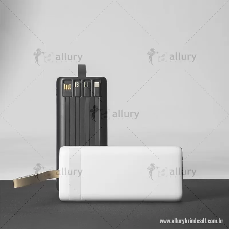 Power Bank 20.000mAh com Lanterna e Multissaídas Descrição: Power bank em plástico com capacidade de até 20.000mAh. Possui quatro cabos integrados com saídas Lightning, USB-C, Micro-USB e USB. Conta ainda com duas entradas, uma USB-A e outra USB-C, painel de LED numérico e lanterna frontal e alça fixa em couro sintético para transporte. Acompanha cabo USB-C. Altura : 15 cm x Largura : 6,8 cm x Espessura : 3 cm Peso aproximado (g): 418 - - ALLDFTEC532