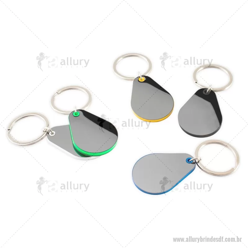 Chaveiro com detalhe plástico e chapa metálica grafite, personalizável frente e verso. - - ALLDFCHV186