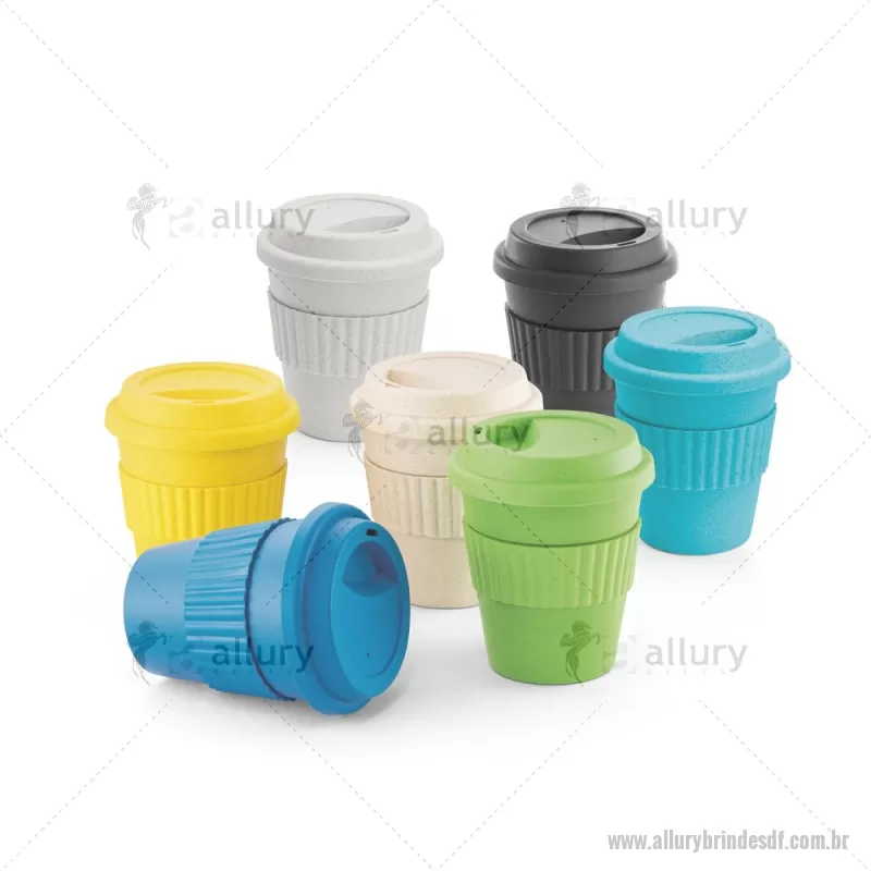 Copo de viagem 380ml Eco com tampa em fibra de bambu (50%) e PP (50%), com tira em silicone para facilitar o transporte de bebidas quentes. Food grade. Pode ir em lava louça e microondas. Medidas: ø9,5 x 11,4 cm - - ALLDFCOF008