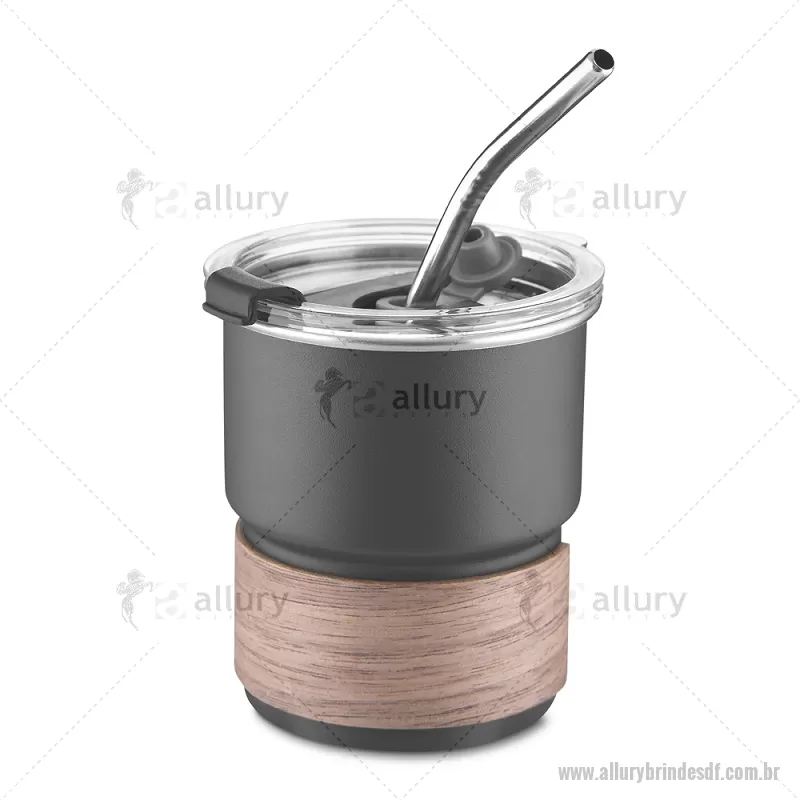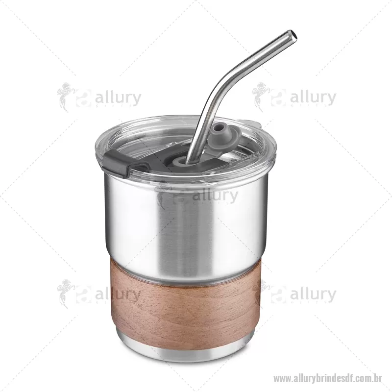 Copo em inox com Canudo Copo de parede simples em aço inox 304 com capacidade de 250ml, com canudo em inox. Tampa em plástico poliestireno (PS) que também possui um bico como forma alternativa de uso. Com pegador em fibra de noz. Possui acabamento externo com pintura fosca. Peso do Produto: 0,100kg Dimensão do Produto: 9xø7,5cm - - ALLDFCPO150