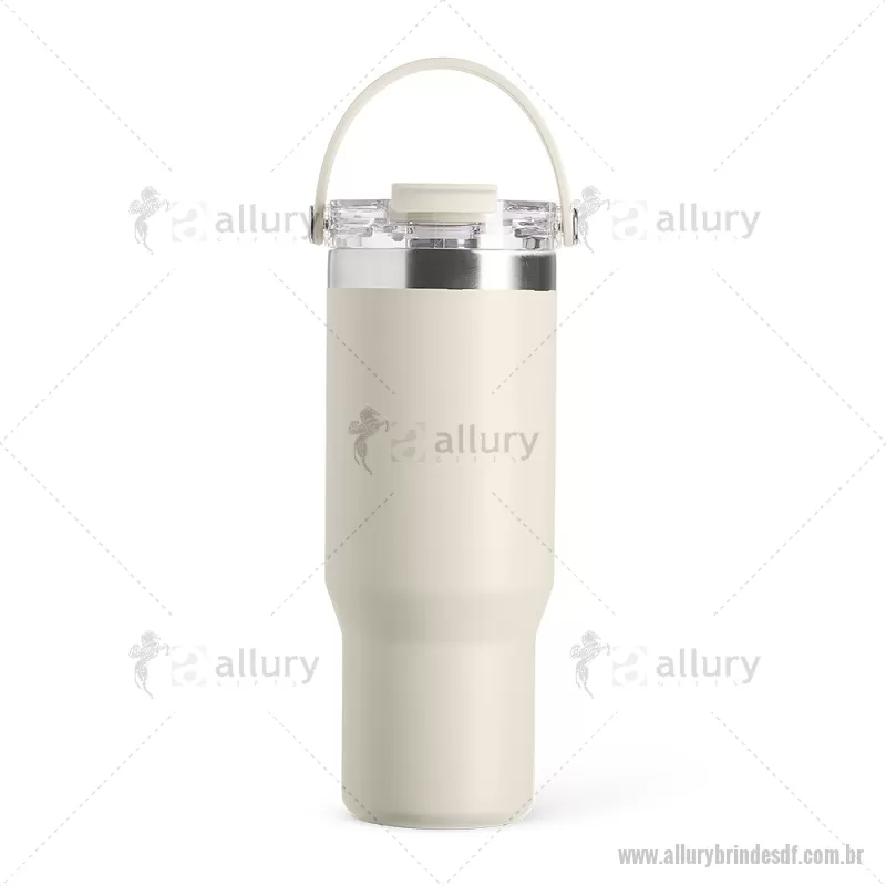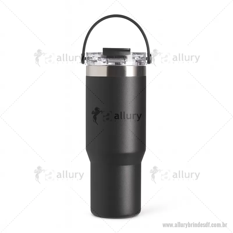 Copo térmico de 900 ml em aço inox com parede dupla, ideal para manter a temperatura de bebidas por mais tempo. Possui tampa plástica rosqueável com vedação a vácuo, proteção para o bocal, bico flip com canudo interno removível e alça para transporte. Conta com acabamento em pintura eletrostática, garantindo durabilidade e visual sofisticado. - - ALLDFCPO146