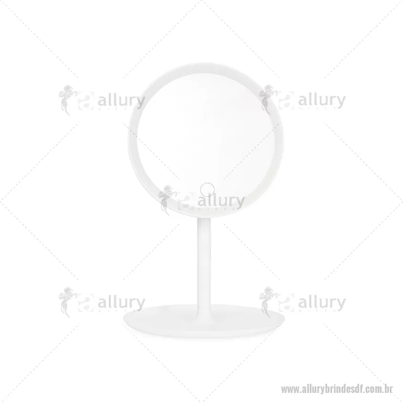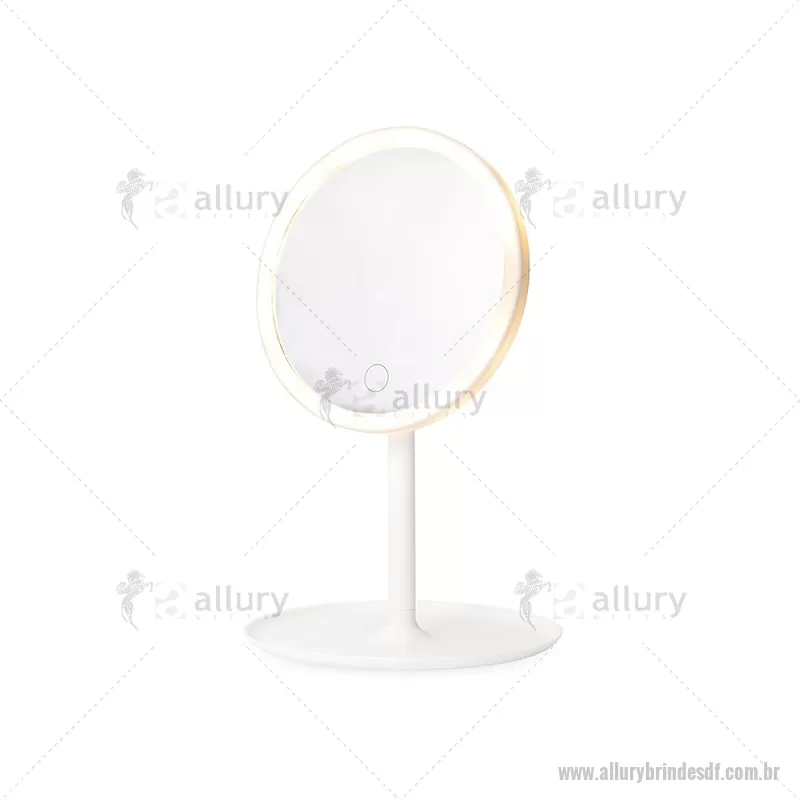 Espelho de Mesa Plástico com LED Descrição: Espelho de mesa com estrutura plástica de fácil montagem e rotação de até 90 graus. Possui iluminação em LED recarregável com três níveis de intensidade ajustáveis pelo botão de toque no espelho. Acompanha cabo USB-C. Altura : 30 cm x Largura : 18,5 cm Tamanho total aproximado (CxL): Diâmetro: 15 cm Peso aproximado (g): 273 - - ALLDFFEM117