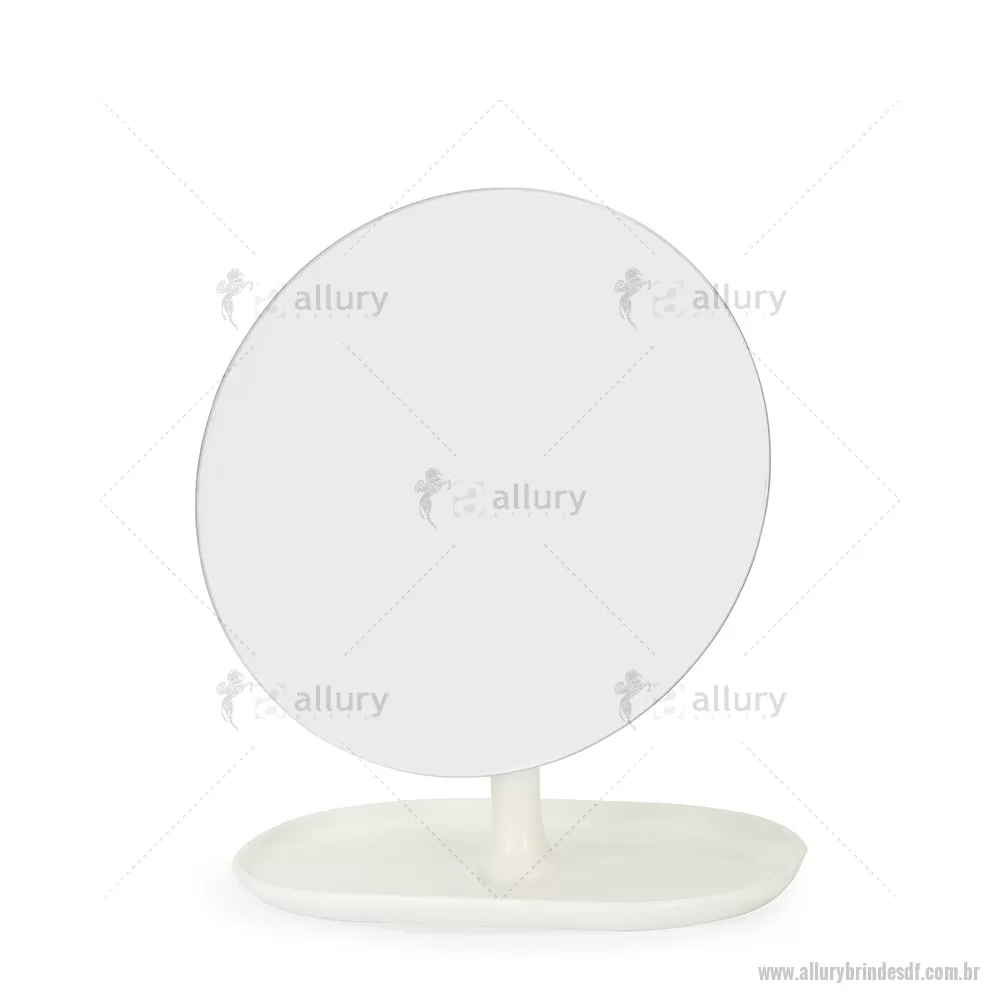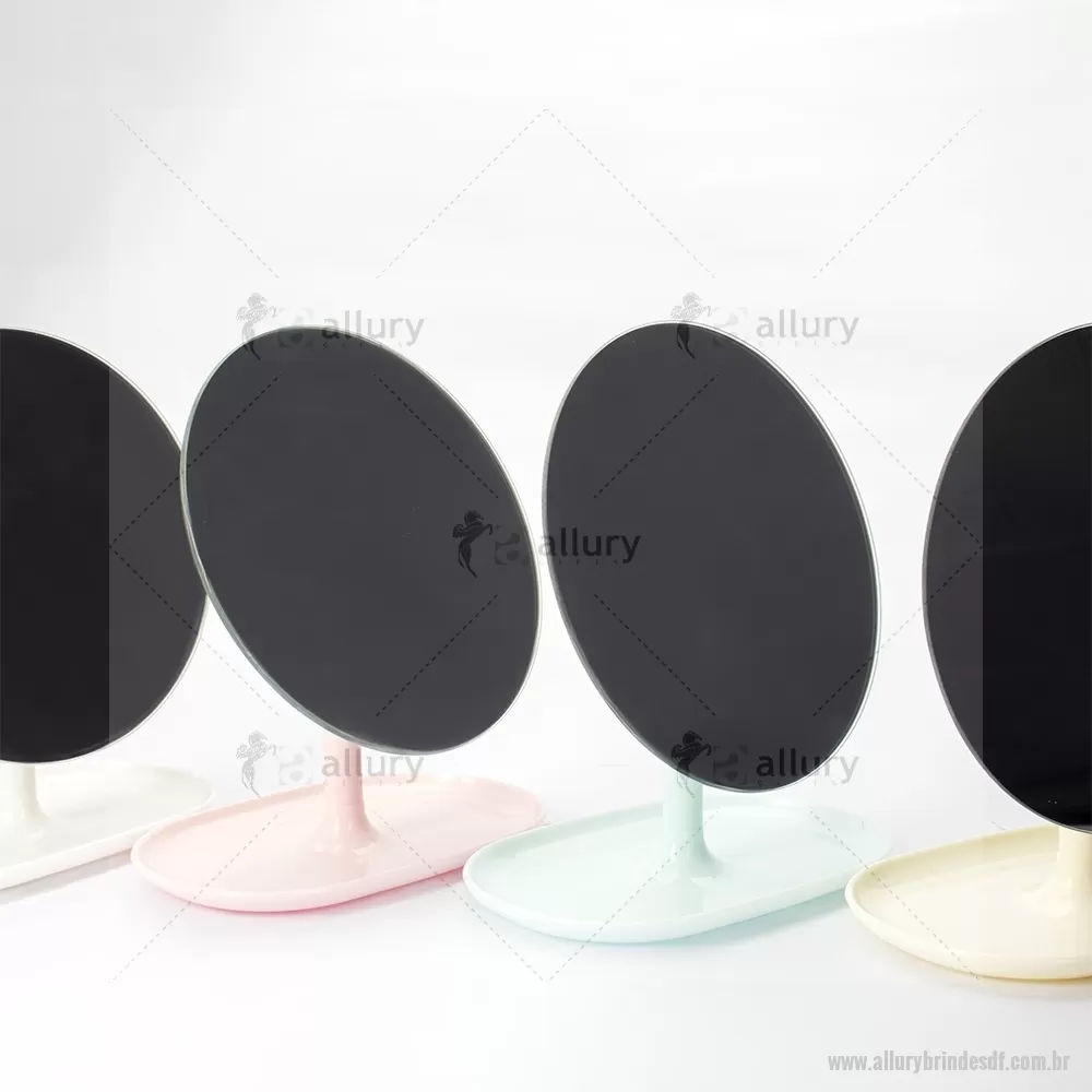 Espelho de Mesa Plástico Descrição: Espelho de mesa com estrutura compacta em plástico de fácil montagem. Conta com base fixa e pedestal giratório em 360 graus que permite ajuste prático em diferentes ângulos e posições. Altura : 25 cm x Largura : 10,7 cm x Comprimento : 15,8 cm Tamanho total aproximado (CxL): Diâmetro: 16 cm Peso aproximado (g): 195 - - ALLDFFEM118