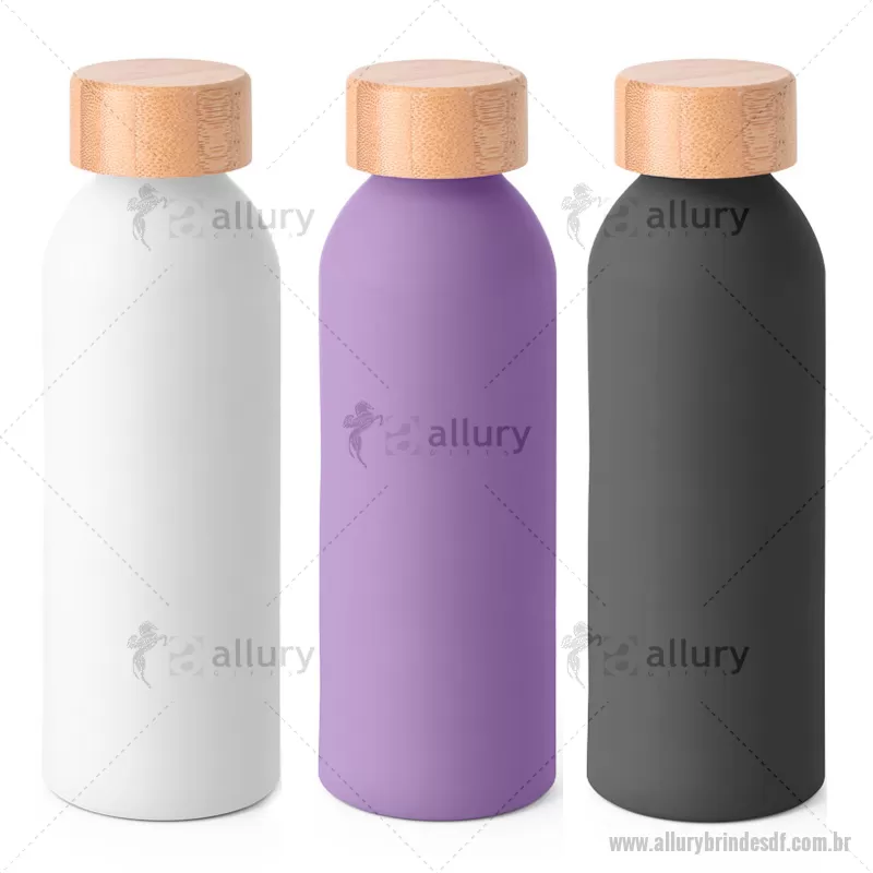 Garrafa Squeeze Metal com Tampa em Bambu Personalizada DF Distrito Federal - ALLDFSQM071