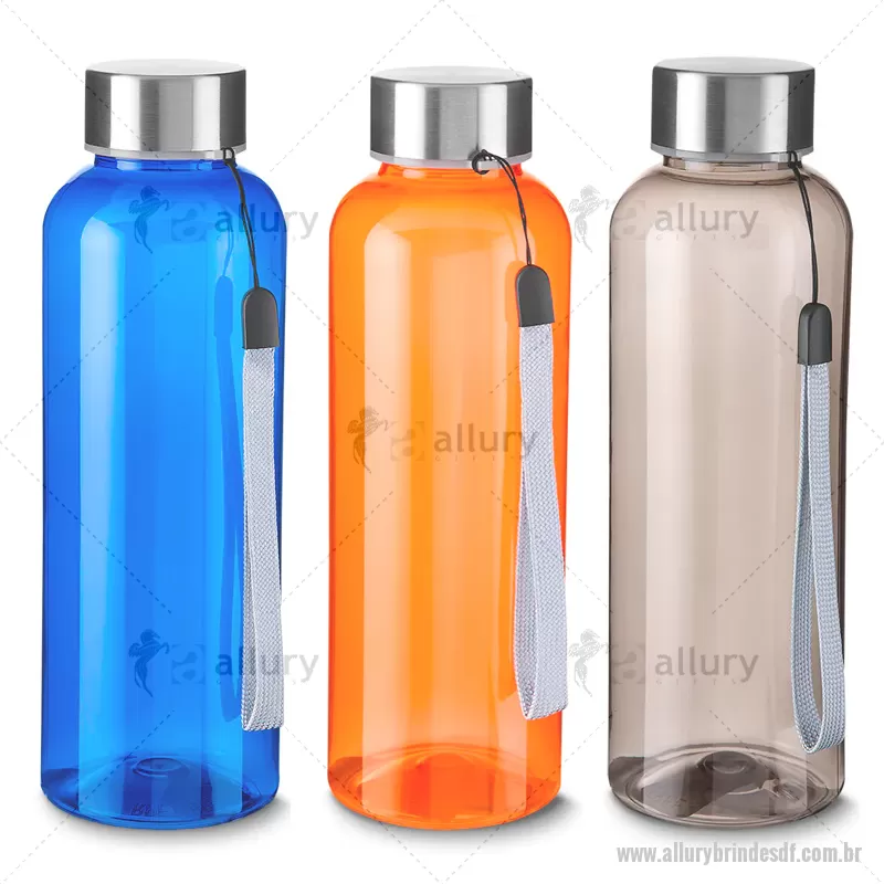 Garrafa *RPET com capacidade de até 500ml com alça em cordão e tampa de metal. *RPET: Tereftalato de polietileno reciclado - - ALLDFSQP095