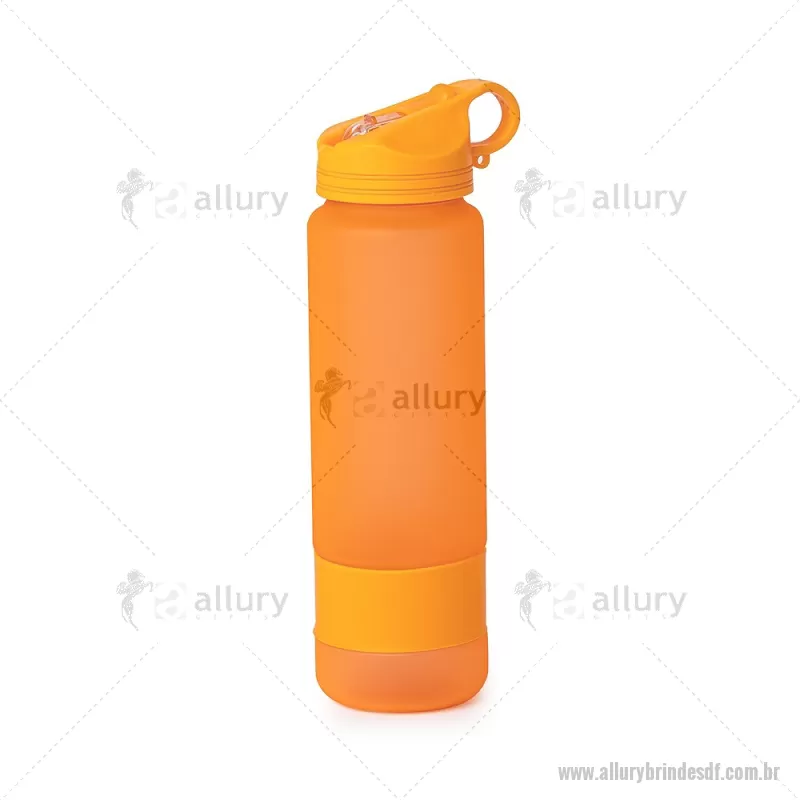Squeeze plástico com capacidade de 900ml com acabamento fosco e detalhe emborrachado na parte inferior. Possui tampa rosqueável com alça integrada e bico de canudo com tampa protetora. Acompanha canudo. Altura : 28 cm x Largura : 7,5 cm x Circunferência : 24 cm Peso aproximado (g): 141 - - ALLDFSQP119