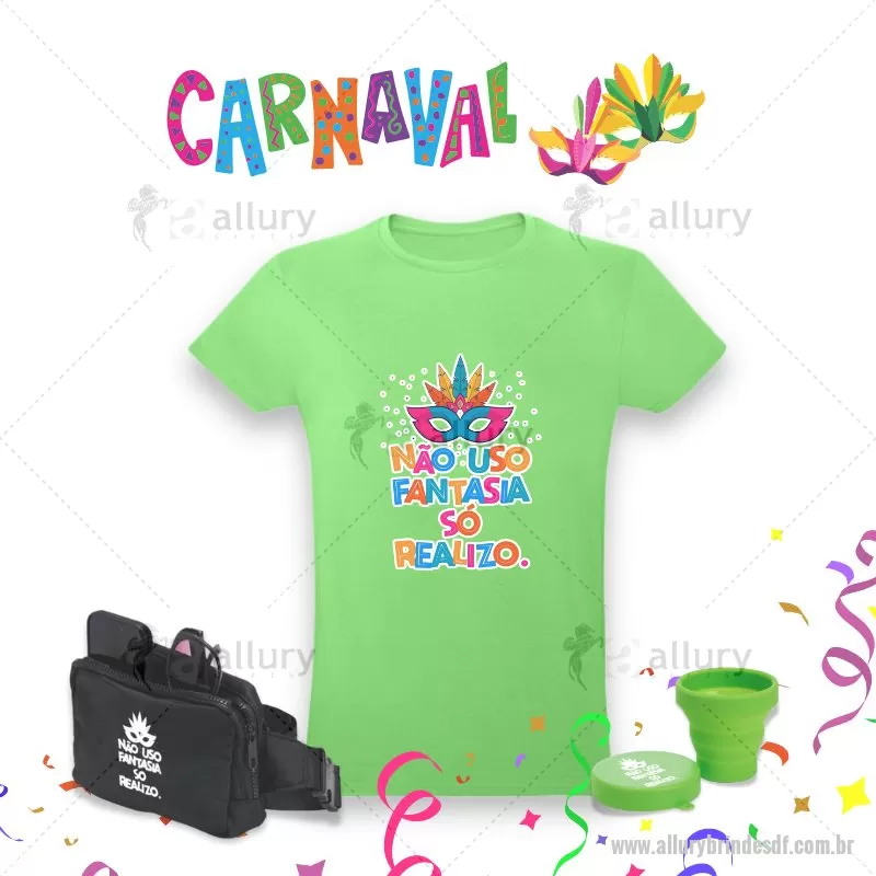 Kit Carnaval 3 Peças Contém: 1 Pochete de Nylon Impermeável, oferece proteção contra a água, garantindo que os itens essenciais fiquem protegidos. Com dois compartimentos com zíper, sendo o principal com um bolso de malha elástica, é possível organizar dinheiro, chaves, fones de ouvido, maquiagens e muito mais. As alças ajustáveis. - Gravação em Silk screen 1 cor (POC009) 1 Copo sanfonado. Copo retrátil com capacidade de 150ml, livre de BPA. Contém tampa plástica de encaixe com acesso para chaveiro. - Gravação em Silk screen 1 cor (CPO140) 1 Camiseta unissex de corte regular em malha 100% algodão (135 g/m2) com fio 30/1 misto. Com gola em ribana 1,5x1,5 com fita de reforço e com costura dupla nas mangas, barra de fundo e laterais. Tamanhos: P, M, G, GG. - Gravação em Transfer Colorido (CMS005) * Verificar cores de produtos Disponíveis. - - ALLDFKIT030