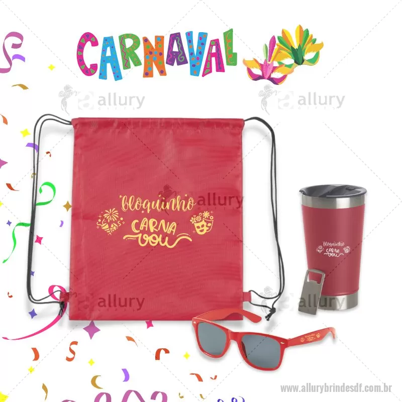Kit Carnaval 3 Peças Kit Torcida Copa do Mundo Contém: 1 Mochila Saco em Poliéster Tamanho total aproximado (CxL): 41 cm x 34 cm - Gravação em Silk screen 1 cor (MCS032) 1 Copo Térmico 500ml com tampa e abridor de garrafa. Confeccionados com dupla parede de inox, isolada a vácuo. Conservação aproximada líquidos quentes: 1h / Conservação aproximada líquidos gelados: 7h / Conservação aproximada líquidos com gelo: 15h Ideal para bebidas geladas ou quentes. - Gravação laser.(CPO083) 1 Óculos de sol personalizável com proteção de 400 UV. Consultar cores disponíveis. - Gravação em Silk screen 1 cor (OCL001) * Verificar cores de produtos Disponíveis. - - ALLDFKIT029