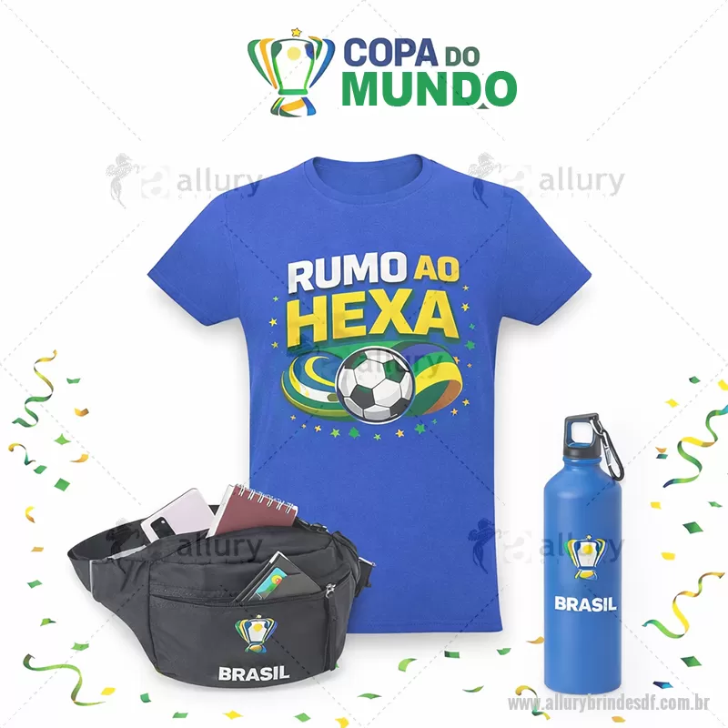 Kit Carnaval 3 Peças Kit Torcedor Copa do Mundo - Vai Brasil Contém: 1 Pochete de Poliéster com três compartimentos bem distribuídos, ela oferece um bolso traseiro seguro e de fácil acesso, um bolso central com rede interna para separar e organizar itens, além de um bolso frontal ideal para objetos menores. Com alça de nylon ajustável para se adaptar a cada pessoa. - Gravação em Silk screen 1 cor (POC013) 1 Squeeze Alumínio com Acabamento Matt. Com tampaem PP mosquetão rosqueável. Capacidade até 800 ml. Food grade. ø73 x 259 mm. - Gravação em Silk screen 1 cor (SQM052) 1 Camiseta unissex de corte regular em malha 100% polyester fiado (135 g/m2) com fio 30/1 polyester. Com gola em ribana 1,5x1,5 com fita de reforço e com costura dupla nas mangas, barra de fundo e laterais. Tamanhos: P, M, G, GG - Gravação em Transfer Colorido (CMS006) * Verificar cores de produtos Disponíveis. - - ALLDFKIT031