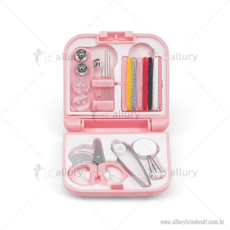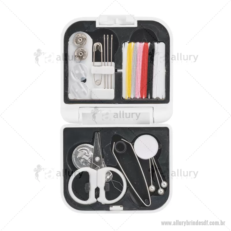 Kit de costura prático e leve para viagem Conjunto de costura prático e leve para levar em viagem. Composto por 3 alfinetes, 3 agulhas, 1 pinça, 1 tesoura, 1 enfia linha, 1 alfinete, 2 botões, 2 colchetes e 6 rolos de linhas de várias cores. Fornecido em estojo. Medidas: 70 x 21 x 65 mm Peso do Produto (g.): 46 - - ALLDFFEM084
