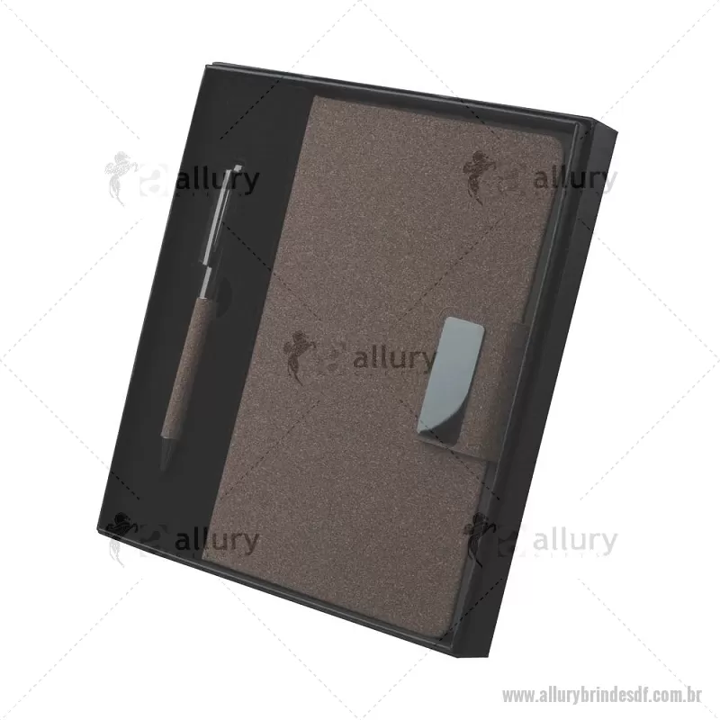 Kit escritório A5 em PU e fibra de café ou chá e Caneta Metalica Kit de Escritório composto por caderno tamanho A5, com capa em PU e detalhe em fibra de chá ou café, contendo 80 folhas pautadas de 70g/m². Acompanha caneta metálica com acabamento no mesmo material de fibra, formando um conjunto elegante e sofisticado. O kit acompanha estojo de papelão na cor preta. Peso do Produto: 0,234kg (Caderno) Peso do Produto: 0,022kg (Caneta) Dimensão do produto: 20,7x13,2cm (Caderno) (AxL) Dimensão Produto: 14xø1cm (Caneta) (AxL) Dimensão do produto: (Estojo) (AxL) 21x20,5 cm - - ALLDFKES081
