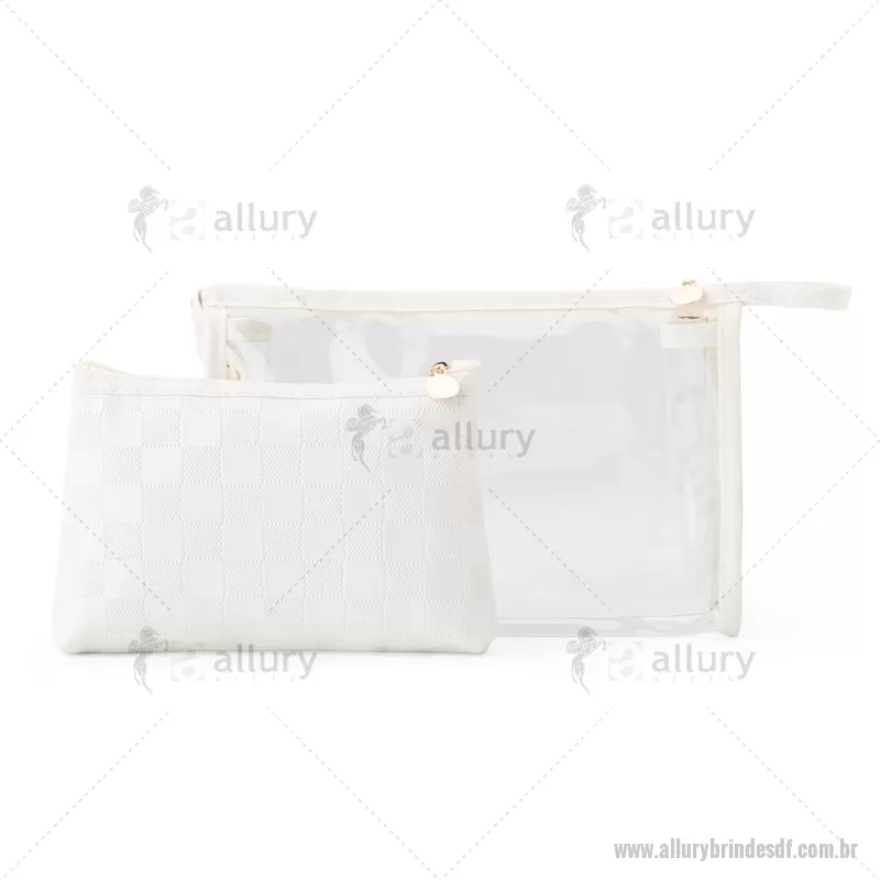 Kit nécessaire duas peças em PU e PVC. Tamanho total aproximado (CxL): Altura : N.1: 17 cm x Largura : N.1: 23 cm x Profundidade : N.1: 7 cm Altura : N.2: 13 cm x Largura : N.2: 19 cm x Profundidade : N.2: 5 cm Peso aproximado (g): 120 - - ALLDFNC117