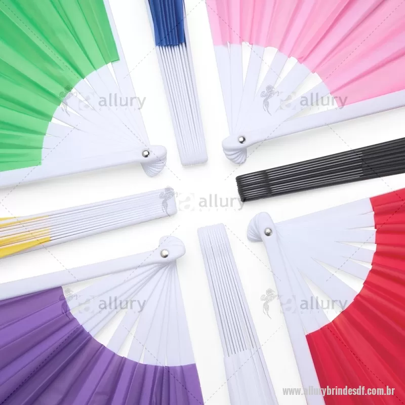 Leque confeccionado com estrutura em plástico resistente e revestimento em tecido tafetá. Leve, prático e ideal para proporcionar frescor em dias quentes, sendo fácil de transportar e usar no dia a dia. - - ALLDFFEM122