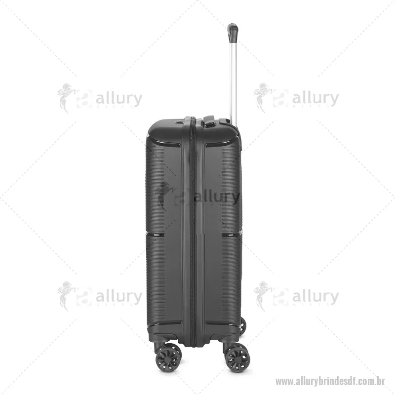 Mala de viagem em plástico PP. Abertura frontal com ziper para acesso ao interior da mala; Forro poliéster; Sistema de carrinho de aço; Alça de mão na parte superior; Quatro rodas de 360 graus; Cadeado tipo TSA ; Saída USB. Acompanha Plaquinha de metal sem personalização. Mala perfurada para aplicação da plaquinha. - - ALLDFMC201