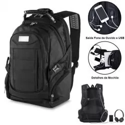 Mochila de nylon 30 litros com três compartimentos, sendo o principal com bolso para notebook 15,6.Com bolsos laterais telados, a mochila possui alça para encaixe em malas de viagem, duas alças de mãos e alças para as costas com revestimento espumado. Acompanha plaquinha metálica. Altura : 44 cm x Largura : 32 cm x Profundidade : 22 cm Peso aproximado (g): 617 - - ALLDFMC237