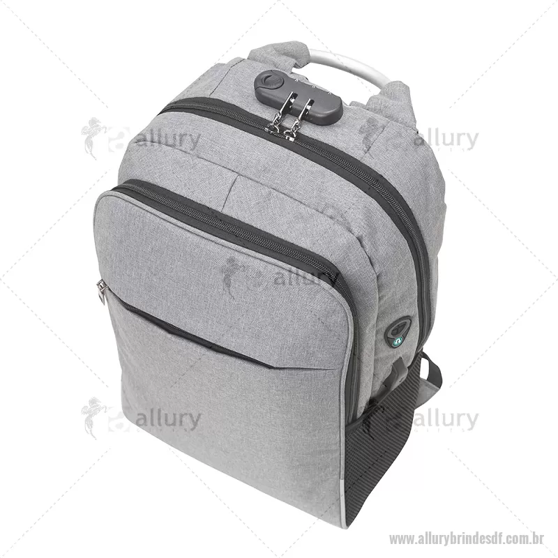 Mochila p/ Notebook em tecido poliéster com fechamento por cadeado com senha. Parte externa: Alça de mão em metal; Alça de ombro acolchoada; 2 bolsos frontais; 2 bolsos laterais; Mini bolso na alça de ombro; Conector USB na lateral; Saída para fones de ouvido na lateral. Parte interna: Compartimento para notebook de 30x27cm Tamanho total do Notebook - 16,5¨ Dimensão do Produto: 43x29,6x12,5cm Peso do Produto: 0,533kg - - ALLDFMC161
