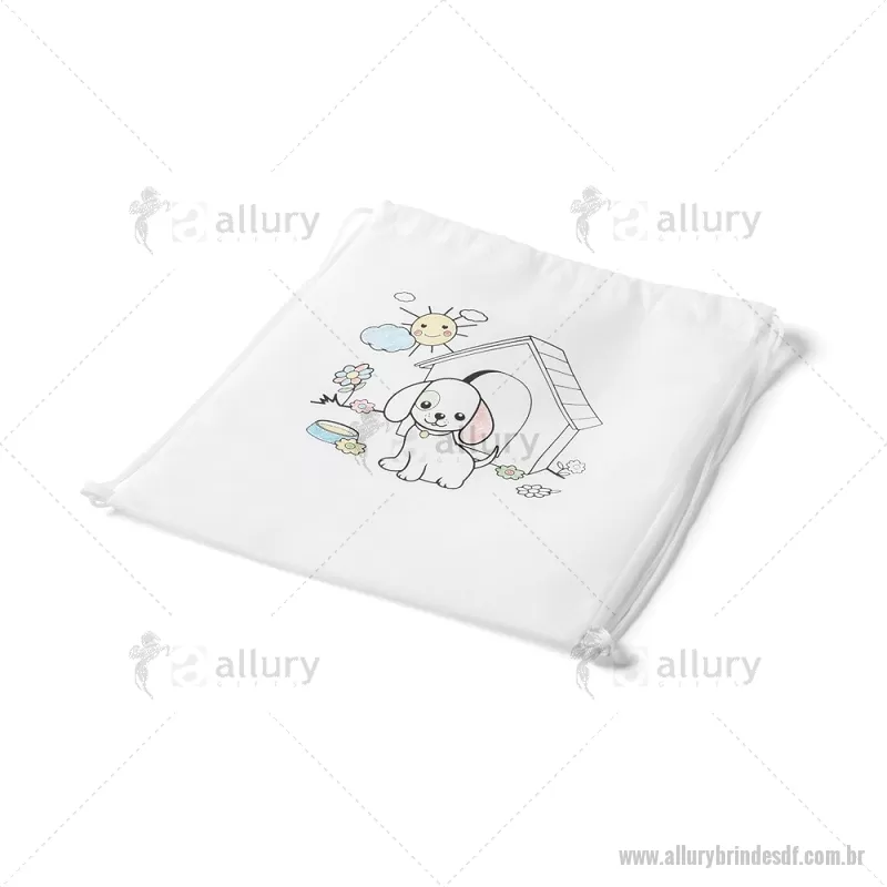 Sacola tipo mochila para colorir em non-woven (80 g/m²) com desenho impresso e bolso interior. 6 gizes de cera inclusos. - - ALLDFKIDS026