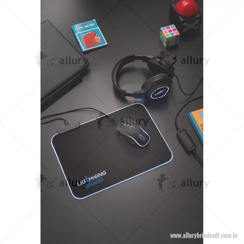 Tapete para jogos em poliéster com base antiderrapante em borracha. Iluminação periférica em RGB, configurada em 15 modos, proporciona uma melhor experiência de jogo. A configuração destas luzes pode ser realizada manualmente permitindo que estabeleça o seu padrão favorito. Cabo resistente de 1.5 m desenvolvido para um uso prolongado. Fornecido em caixa presente. Medidas: 250 x 350 x 4 mm | Caixa: 60 x 365 x 60 mm - - ALLDFMOP018