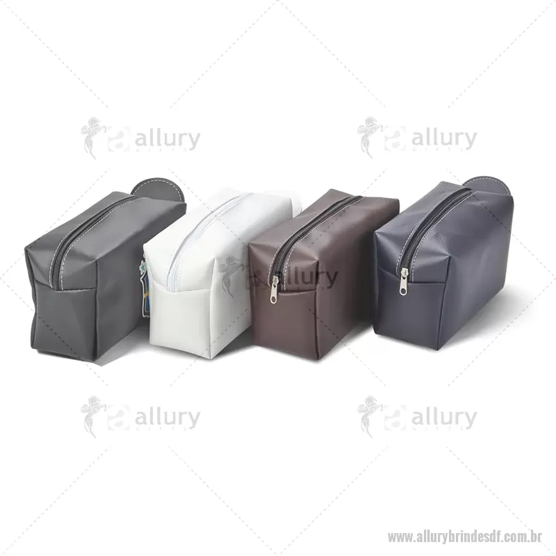 Nécessaire em couro sintético preto com pegador lateral. Gravação frontal na opções: serigrafia e plaquinha. Consultar cores disponíveis e tipo de gravação. - - ALLDFNC080