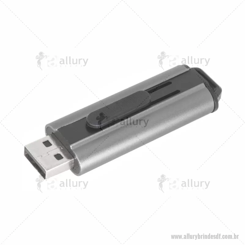 Pen Drive Retrátil. Pen drive metal retrátil cinza chumbo. Possui argola na parte inferior que pode ser utilizado para colocar um cordão. Para utilizar basta levantar/abaixar a trava(com relevo) na parte central. Capacidade 4GB. Ideal para brindes corporativos. - - ALLDFPEN123-4GB