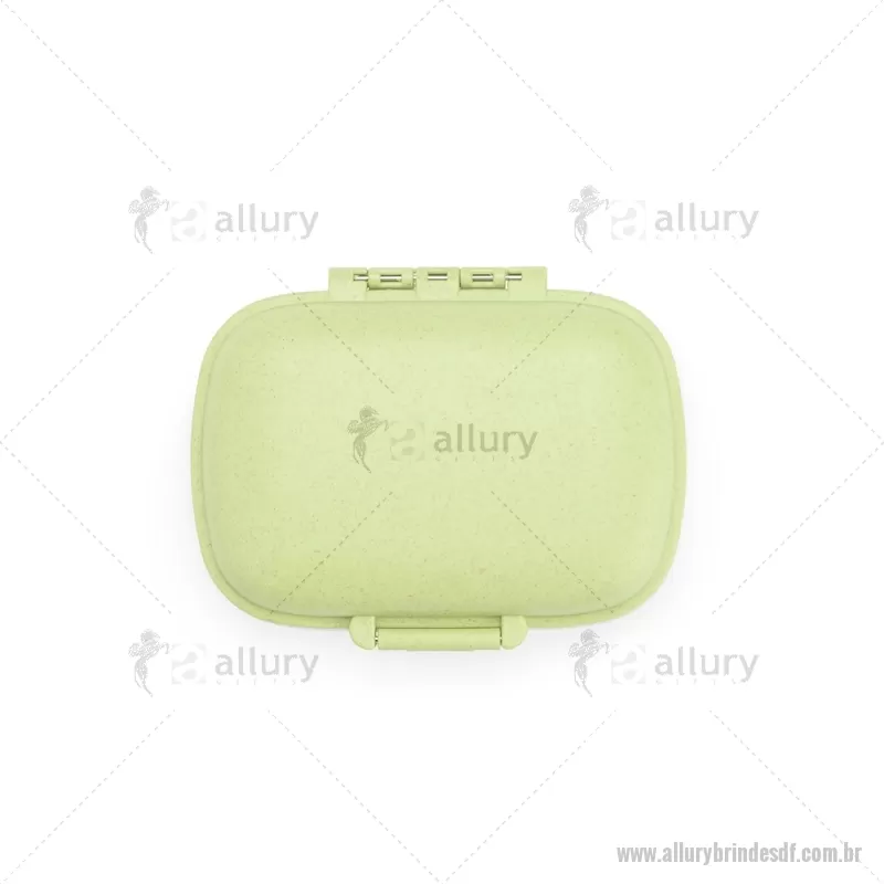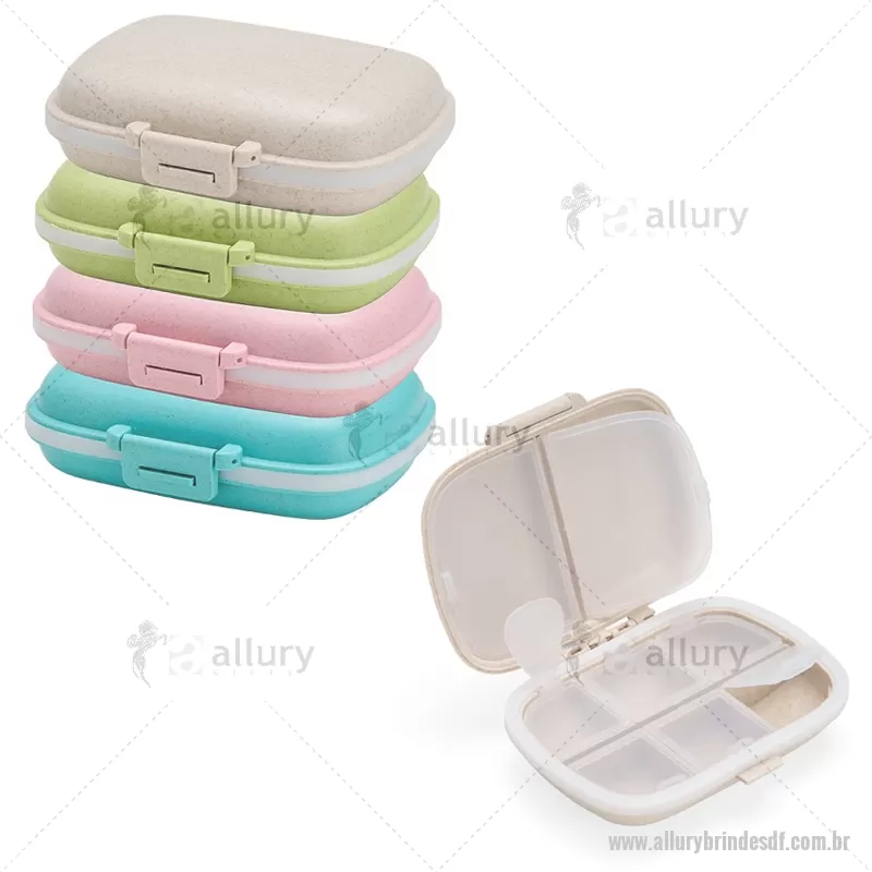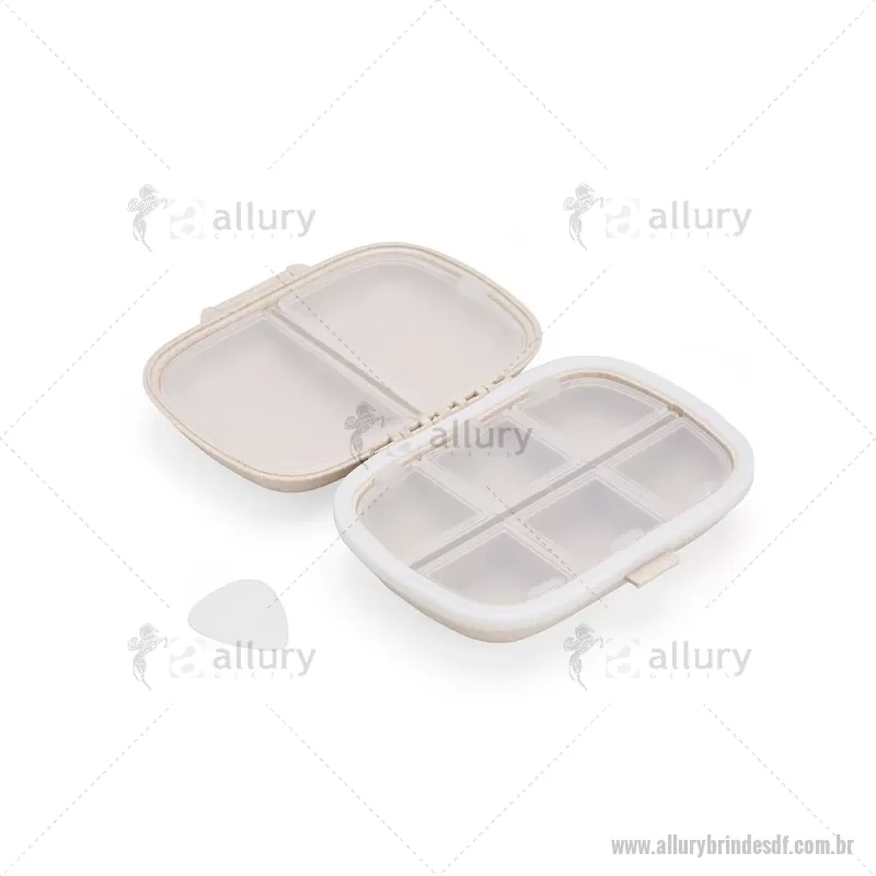 Porta-Comprimidos Plástico Porta-comprimidos compacto feito em plástico obtido da palha de trigo e anel de vedação para as bordas em silicone. Possui oito compartimentos com tampas removíveis, sendo dois maiores com capacidade de até 30ml e seis menores com até 10ml cada. Acompanha palheta multiuso. Largura : 8,6 cm x Espessura : 3,6 cm x Comprimento : 11 cm Peso aproximado (g): 72 - - ALLDFPCP016