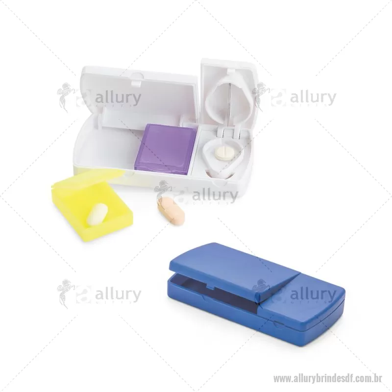 Porta comprimidos com tampa, 2 divisórias e cortante. As divisórias são extraíveis e coloridas, facilitando a sua distinção. Food grade. 94 x 48 x 16 mm - - ALLDFPCP013
