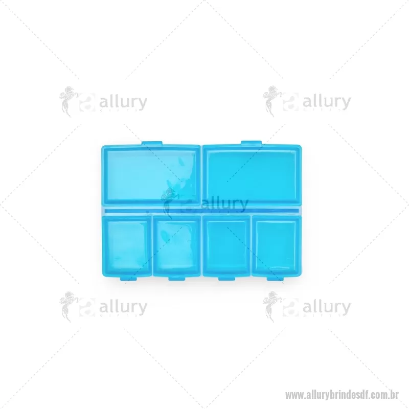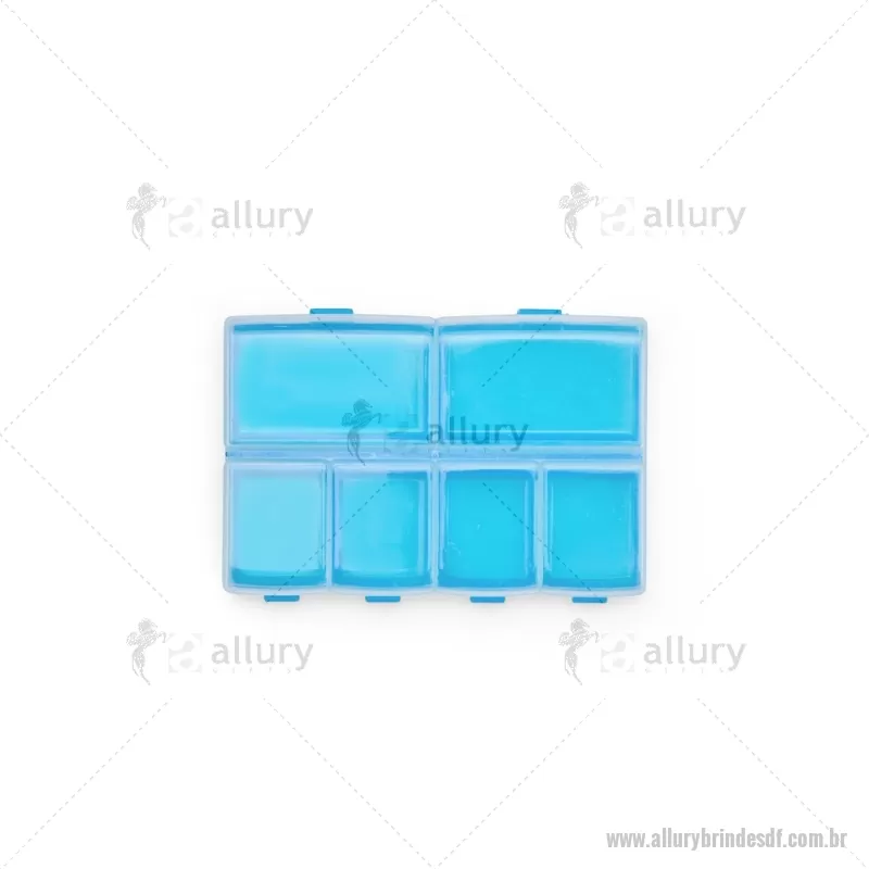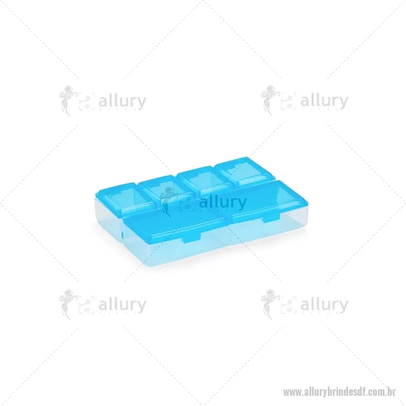 Porta-Comprimidos Plástico Descrição: Porta-comprimidos em plástico com seis compartimentos, dois maiores e outros quatro menores, oferecendo mais possibilidades de organização. Largura : 6,4 cm x Espessura : 1,9 cm x Comprimento : 9,5 cm Peso aproximado (g): 23 - - ALLDFPCP015