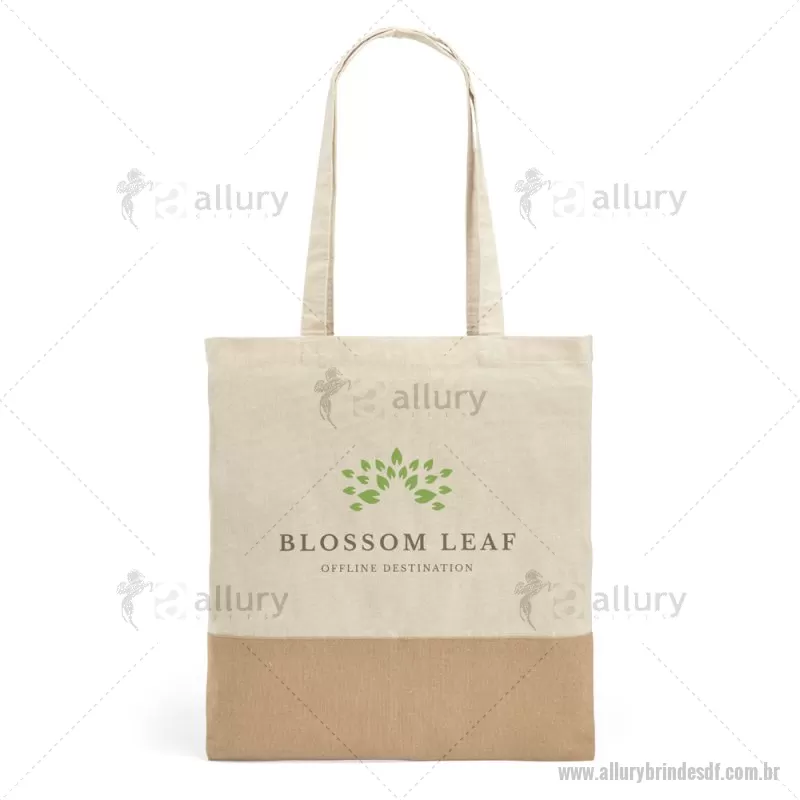 Sacola. 100% algodão: 160 g/m². Detalhe em juta. Alças de 65 cm. 375 x 415 mm - - ALLDFSAC040