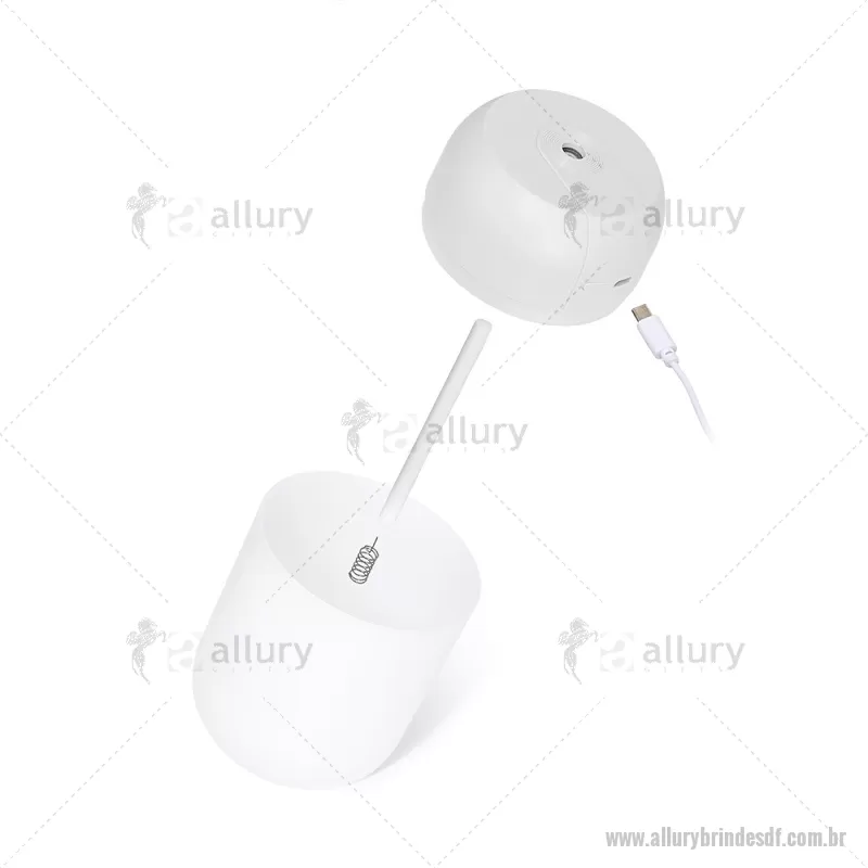 Umidificador de ar com LED, possui reservatório de água com capacidade de 350ml, dois níveis de névoa, contínua e com oscilação. Acompanha filtro de algodão e cabo USB V8. - - ALLDFTEC484