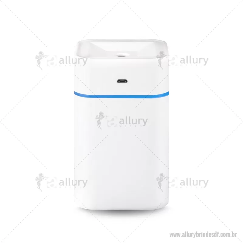 Umidificador de ar com difusor de óleo essencial à base de água via USB. Feito com ABS reciclável+ PP, com capacidade de 260ml. Na parte superior tem um faixa que acende, ideal para uso em escritório ou em casa. Acompanha cabo USB. - - ALLDFTEC494